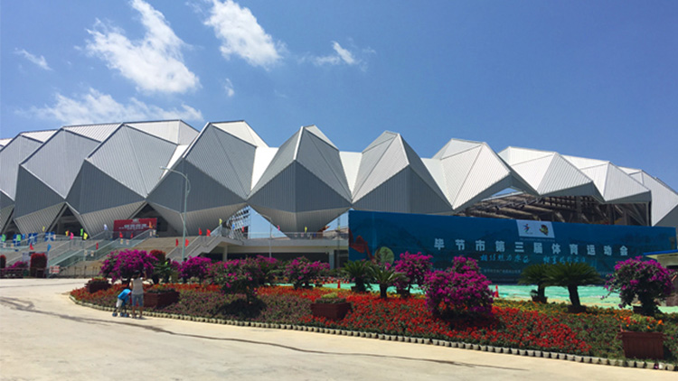黔西体育场工程开始了,听泉鉴鲍 有限公司参加了这次的工程建设,在此次建设中,拜特水漆大放异彩,效果如下图显示: